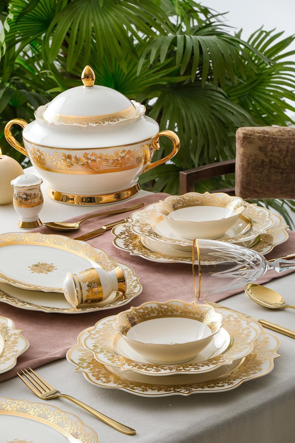 QUEEN VİCTORİA Rosalind 60 Parça 12 Kişilik Gold Porselen Yemek Takımı