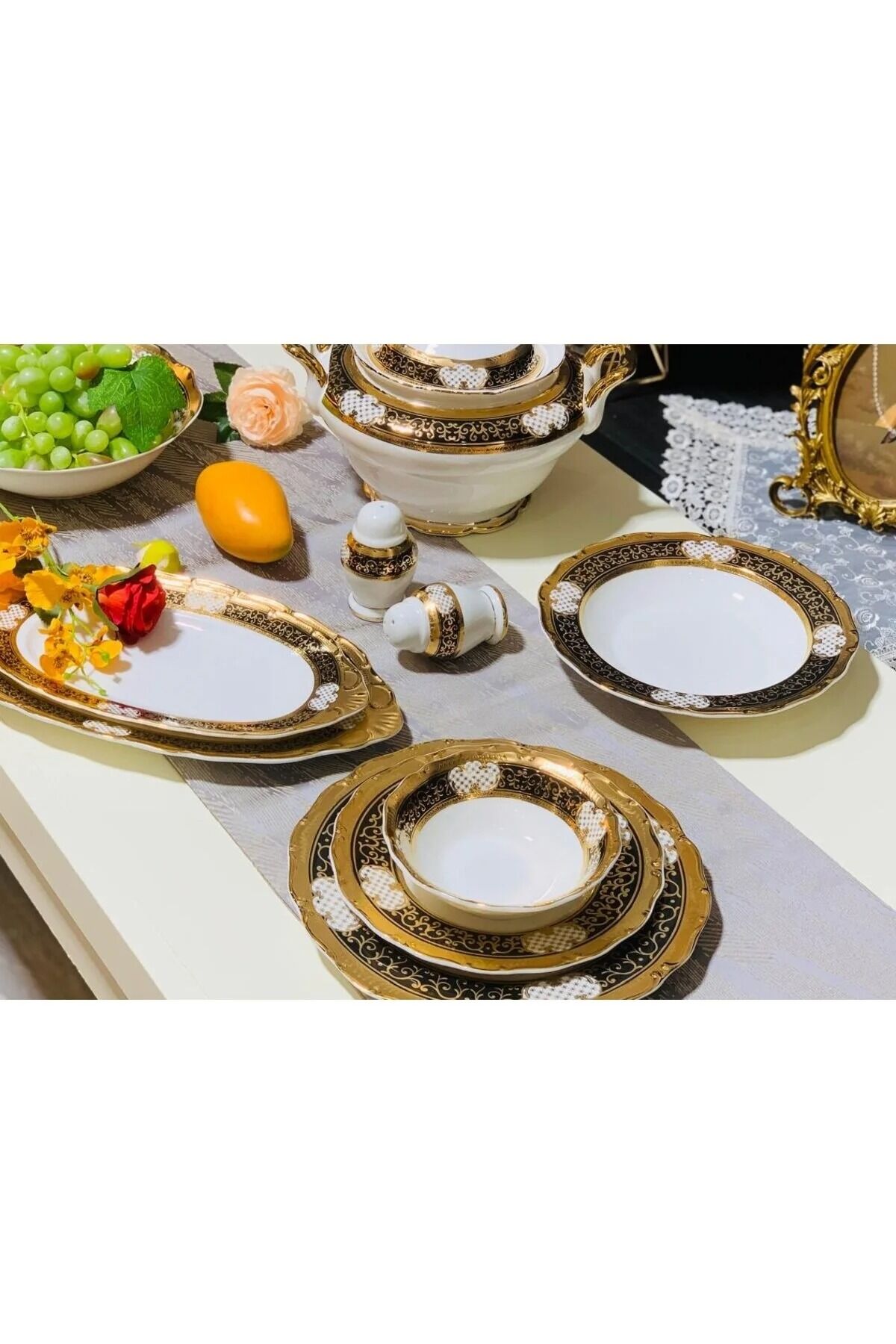12 Adet Servis Tabağı: Ana yemekler için ideal boyut.