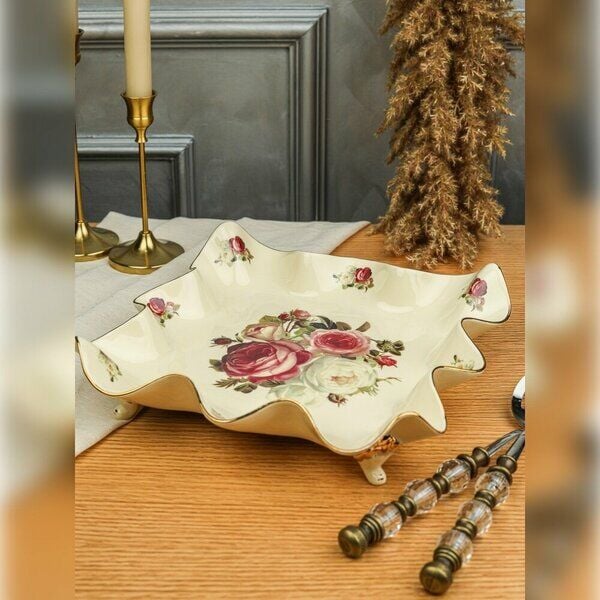 RoyKing Rose Kare Ayaklı Sunum Tabak 28 CM