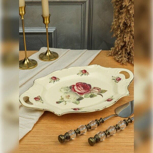 RoyKing Rose Oval Kulplu Sunum Tabak 36 CM