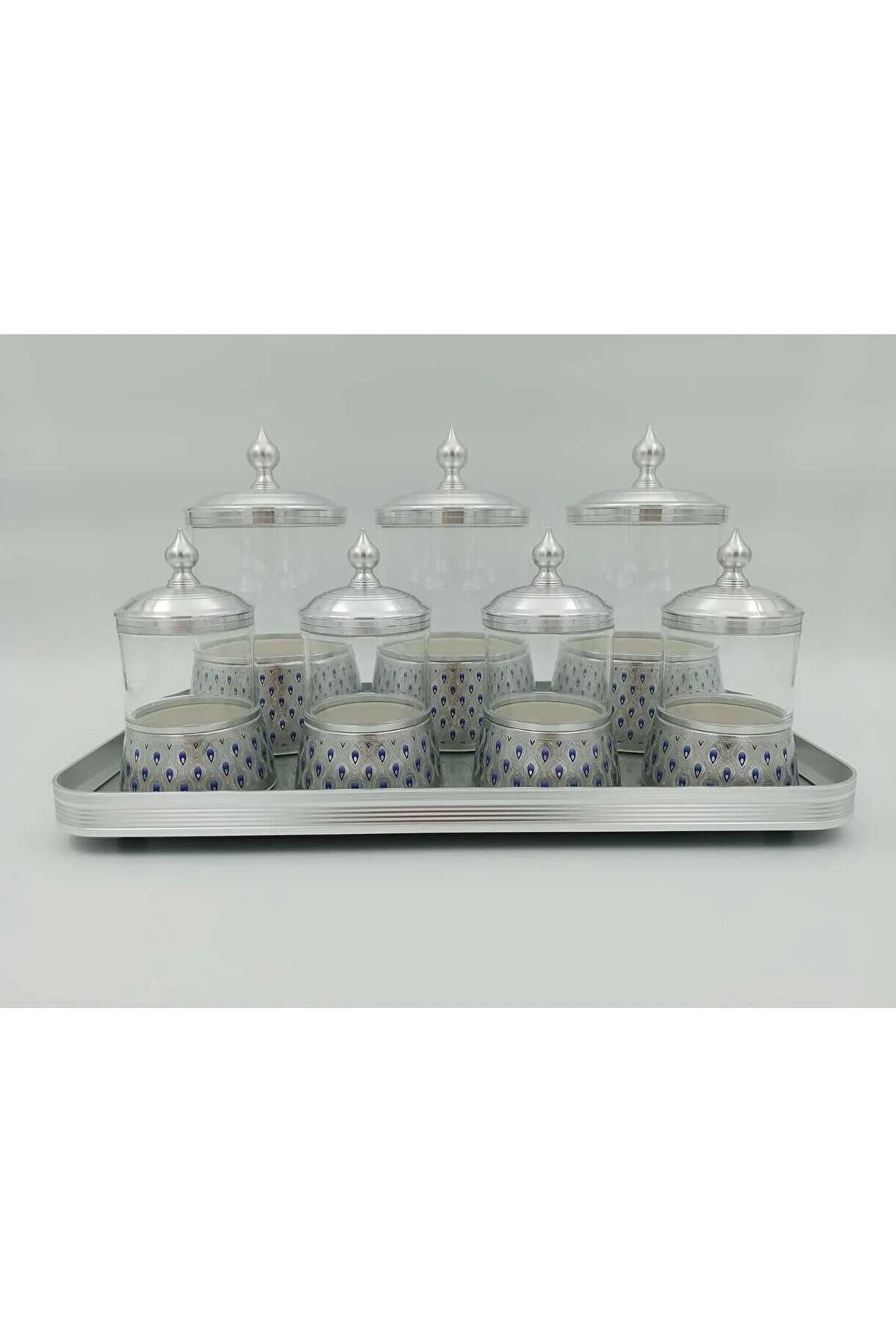- 8 Parça Tepsili Cam Baharat Takımı Platin - GLD02